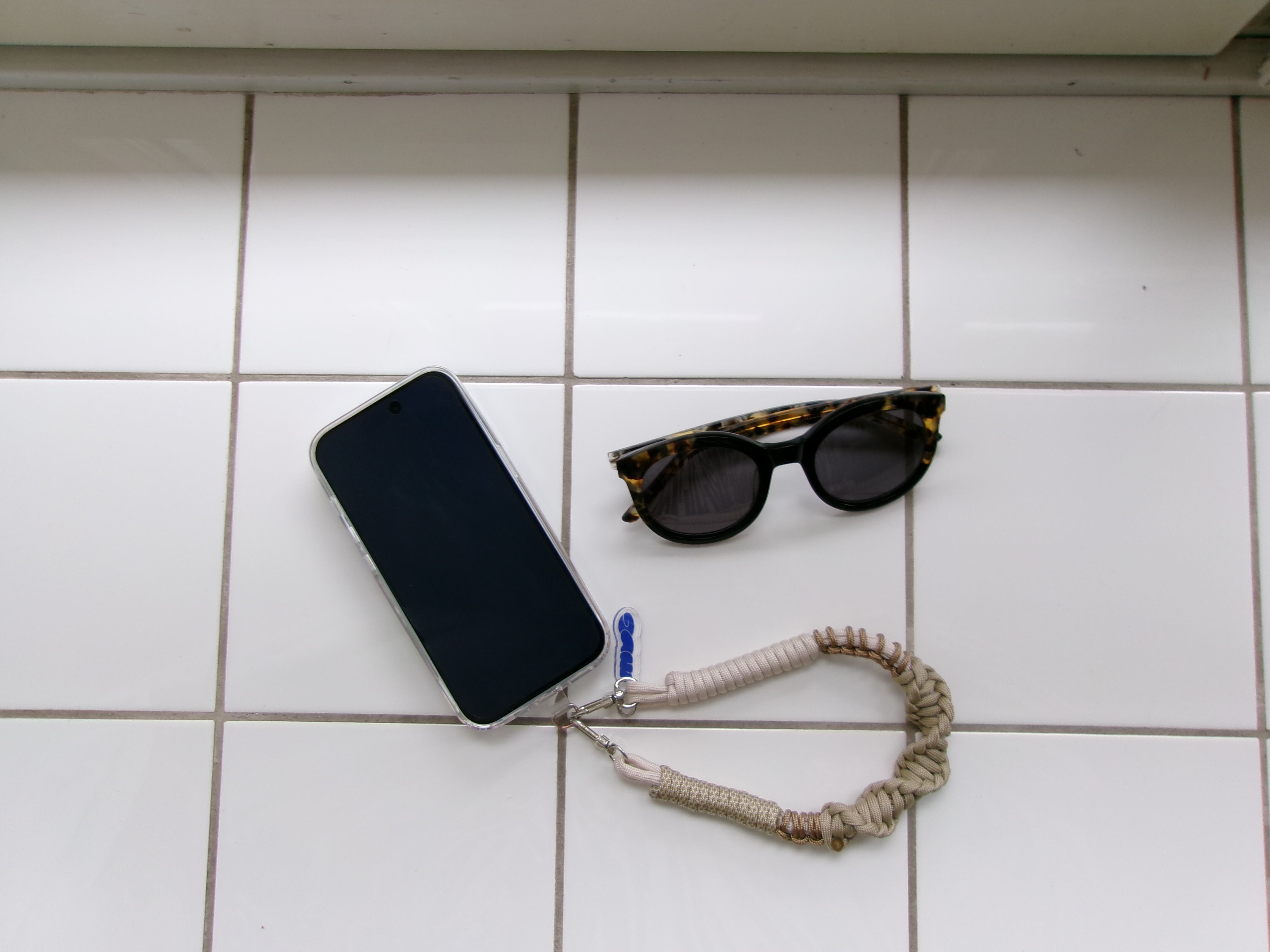 スマートフォンを斜めがけ、画面割れ防止に。